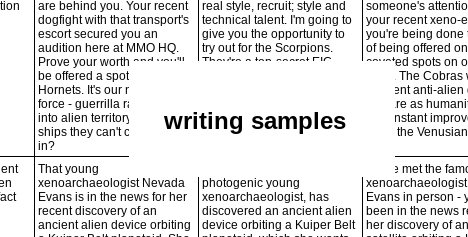 Plagiarism issues (I guess I’m just that good!) as well as erring on the side of NDA compliance have led me to password-protect certain examples of my work.