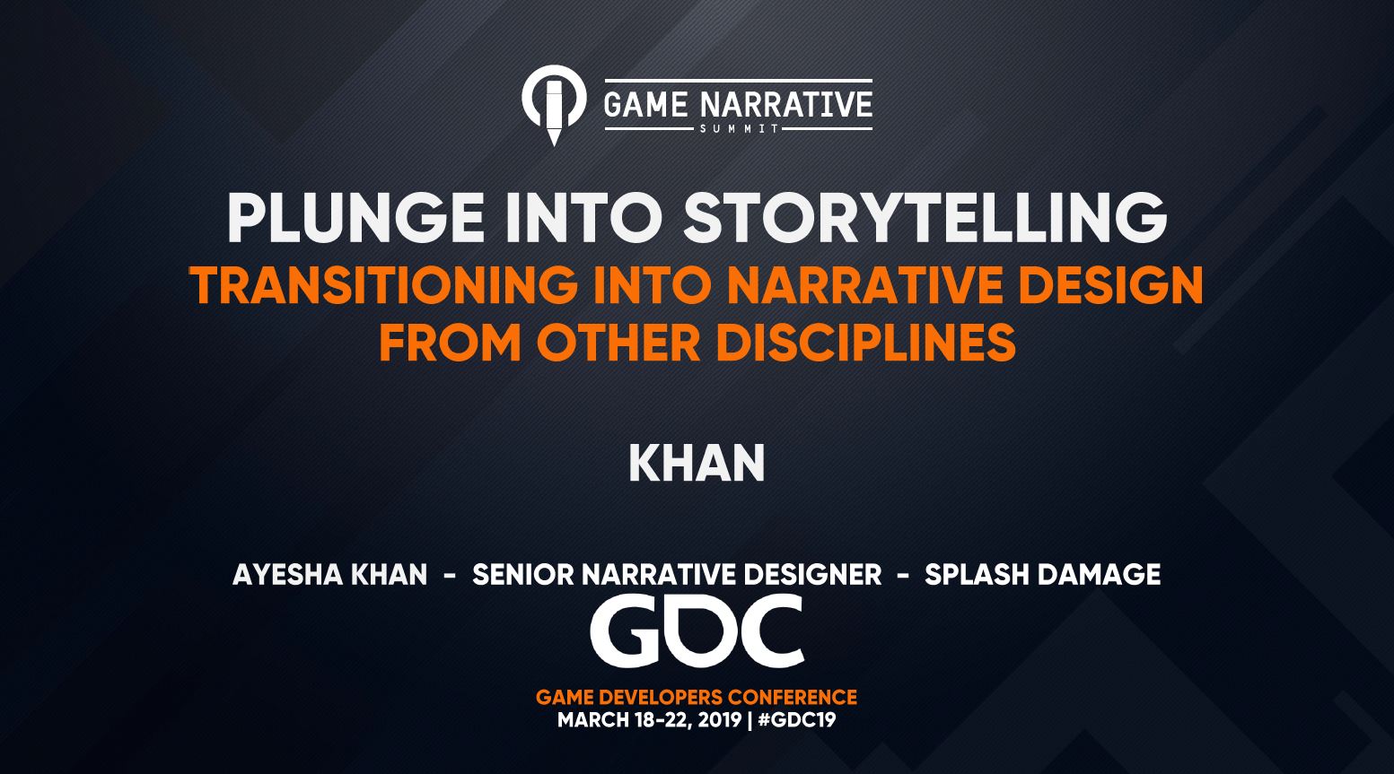 How does one actually get into the fabulous, mysterious, and glamorous* field of Narrative Design? This is the lecture that Khan, a twelve-year industry veteran (‘Lord of the Rings Online’, ‘Gears: Tactics’), wishes she’d heard at the start of her career. She will give concrete tips for tailoring applications, portfolios, and interviews for narrative design rather than for game writing or game design roles; acing interviews by understanding teams’ narrative needs; navigating the choices of home or abroad, indie or corporate, AAA or free-to-play; and, once feet are in doors, tips and best practices for succeeding as a rookie narrative designer.